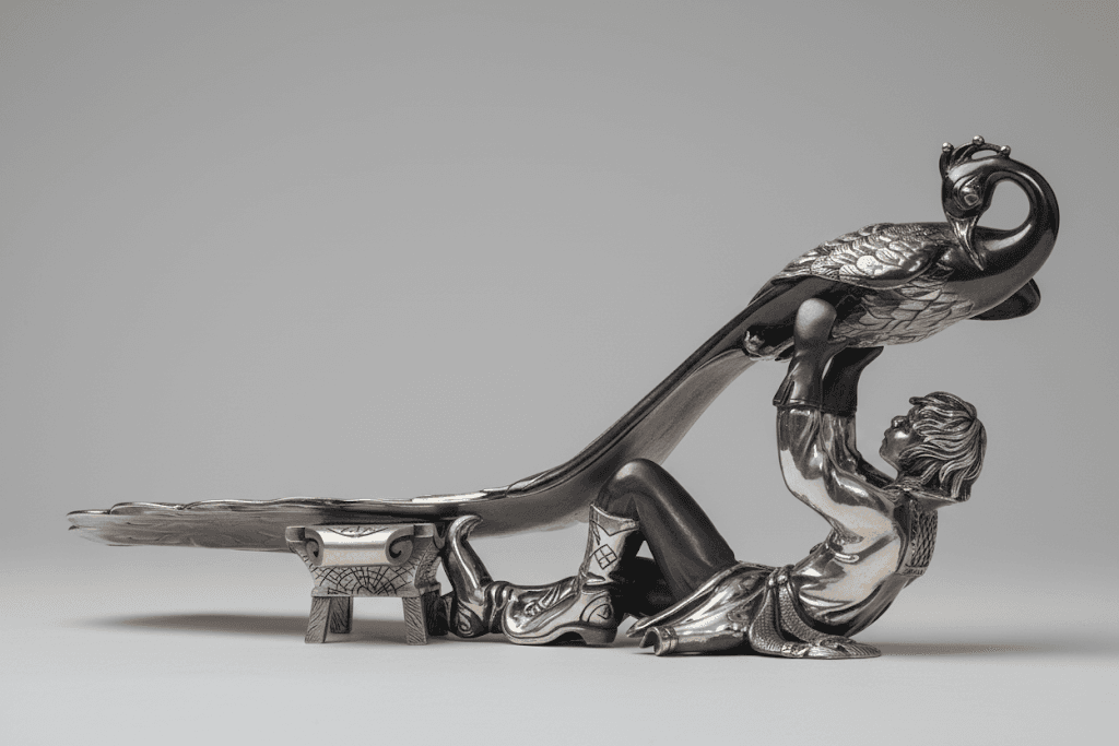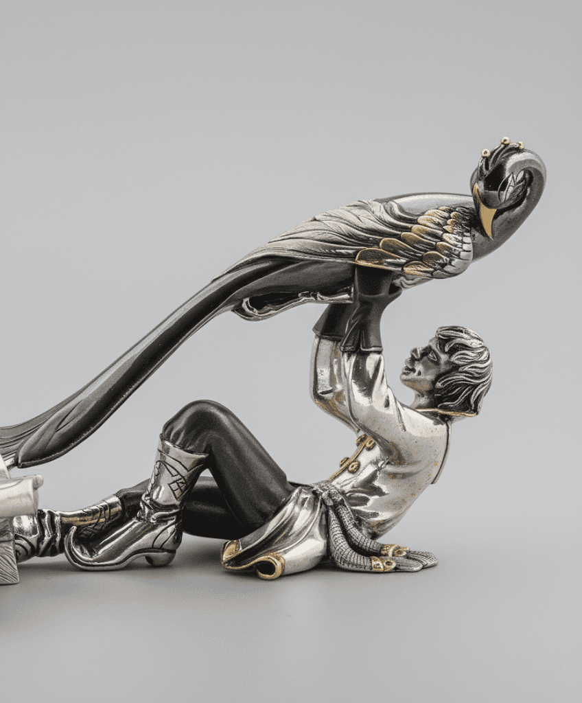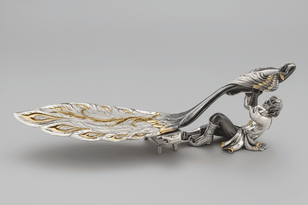 Лопатка выполнена в образе сказочной Жар-Птицы символа удачи, света и вдохновения. Её изящные крылья словно вспыхивают огненным сиянием, а тонкая проработка пера подчёркивает волшебный характер образа. Подставка в виде Ивана напоминает: чудо даётся не по расчёту, а по зову сердца. Лопатка станет не только украшением стола, но и напоминанием о том, что настоящая удача приходит к тем, кто идёт своим путём.
